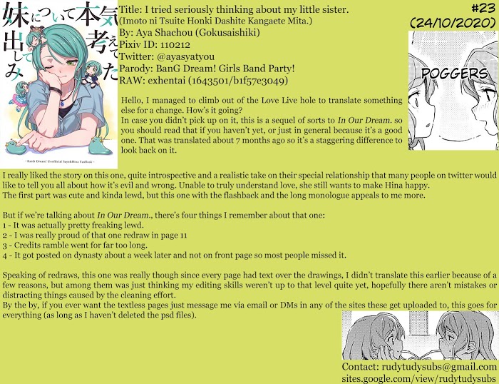 《Bang Dream! - I tried seriously thinking about my little sister. (Doujinshi)》