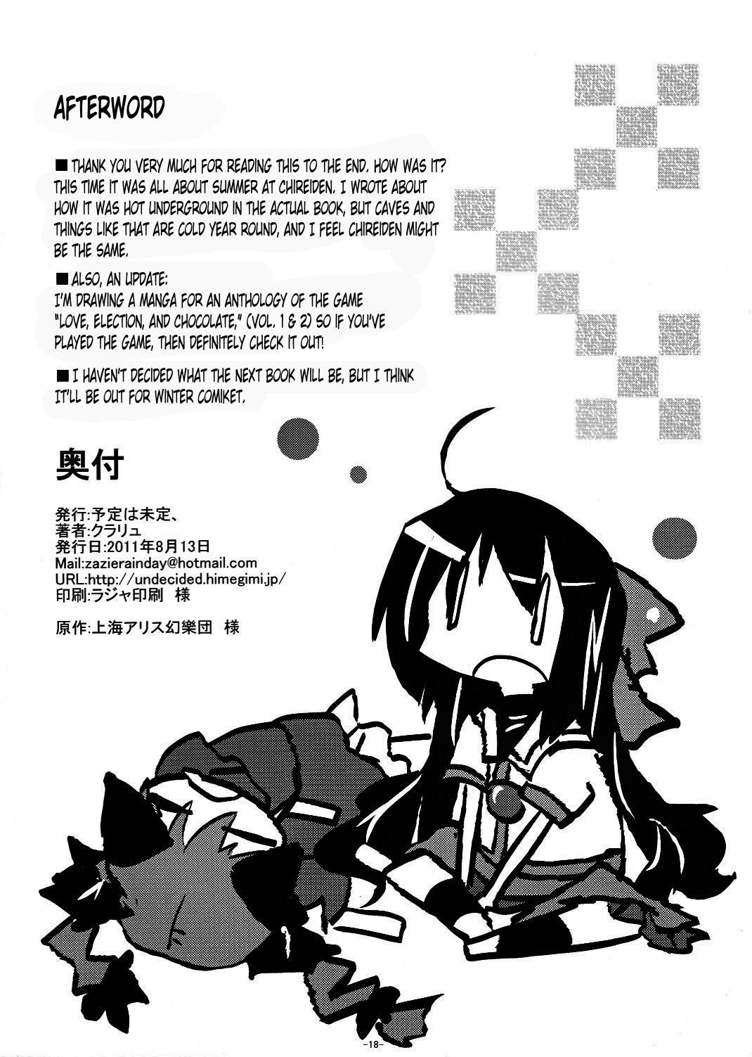 《Touhou - How to Spend Your Summer Underground (Doujinshi)》Chapter 0: Oneshot Oneshot