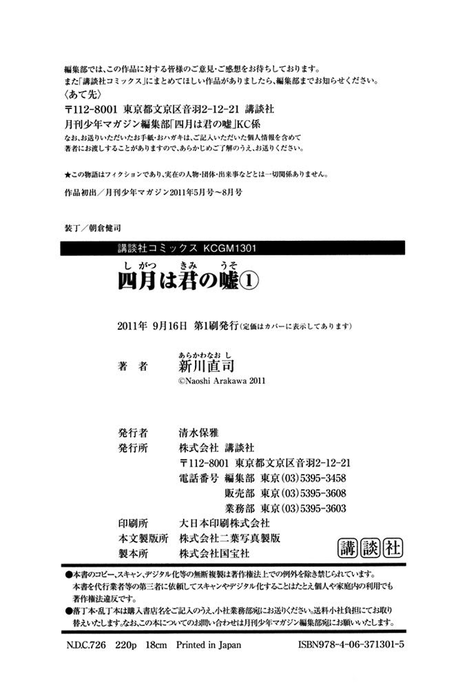 《Shigatsu wa Kimi no Uso》Vol.1 chapter 4: colorful