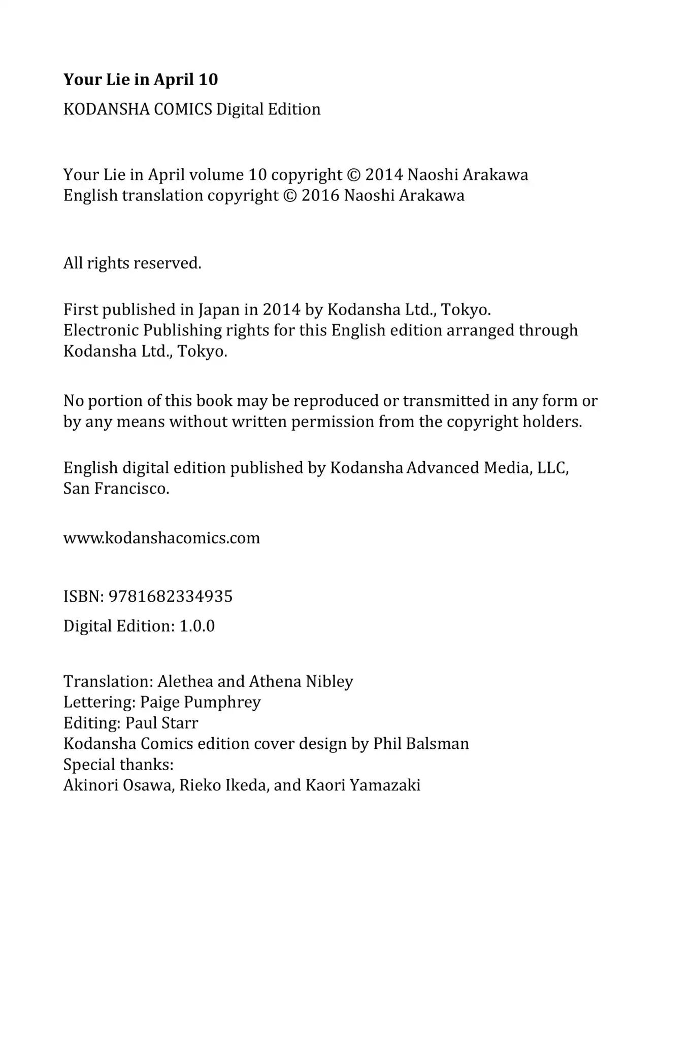 《Shigatsu wa Kimi no Uso》Vol.10 chapter 40: your hands, my hands