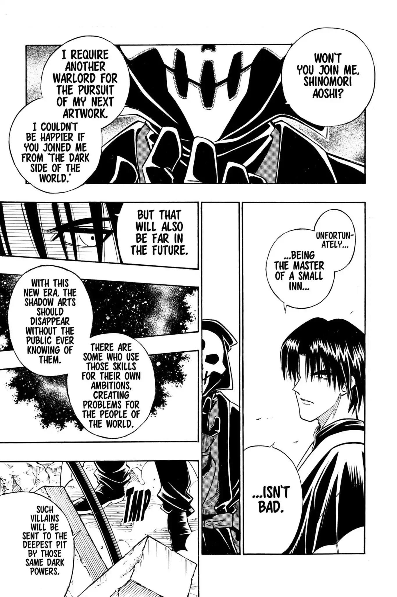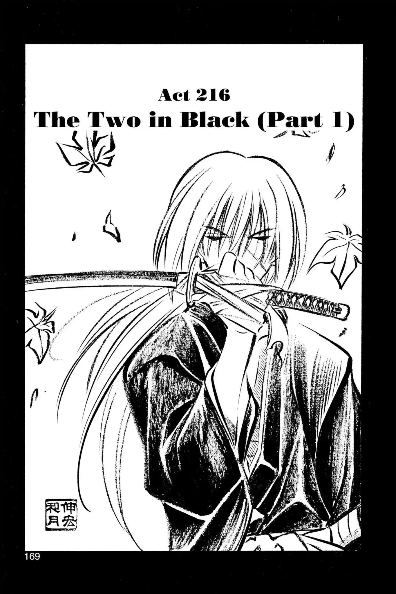 《Rurouni Kenshin: Meiji Kenkaku Romantan》Vol.24 Chapter 216 : the two dressed in black -...