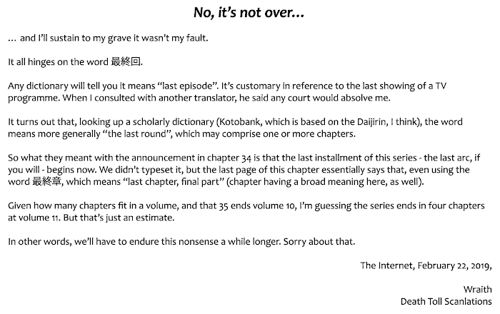 《Konya wa Tsuki ga Kirei Desu ga, Toriaezu Shi ne》Vol.10 chapter 35: the end