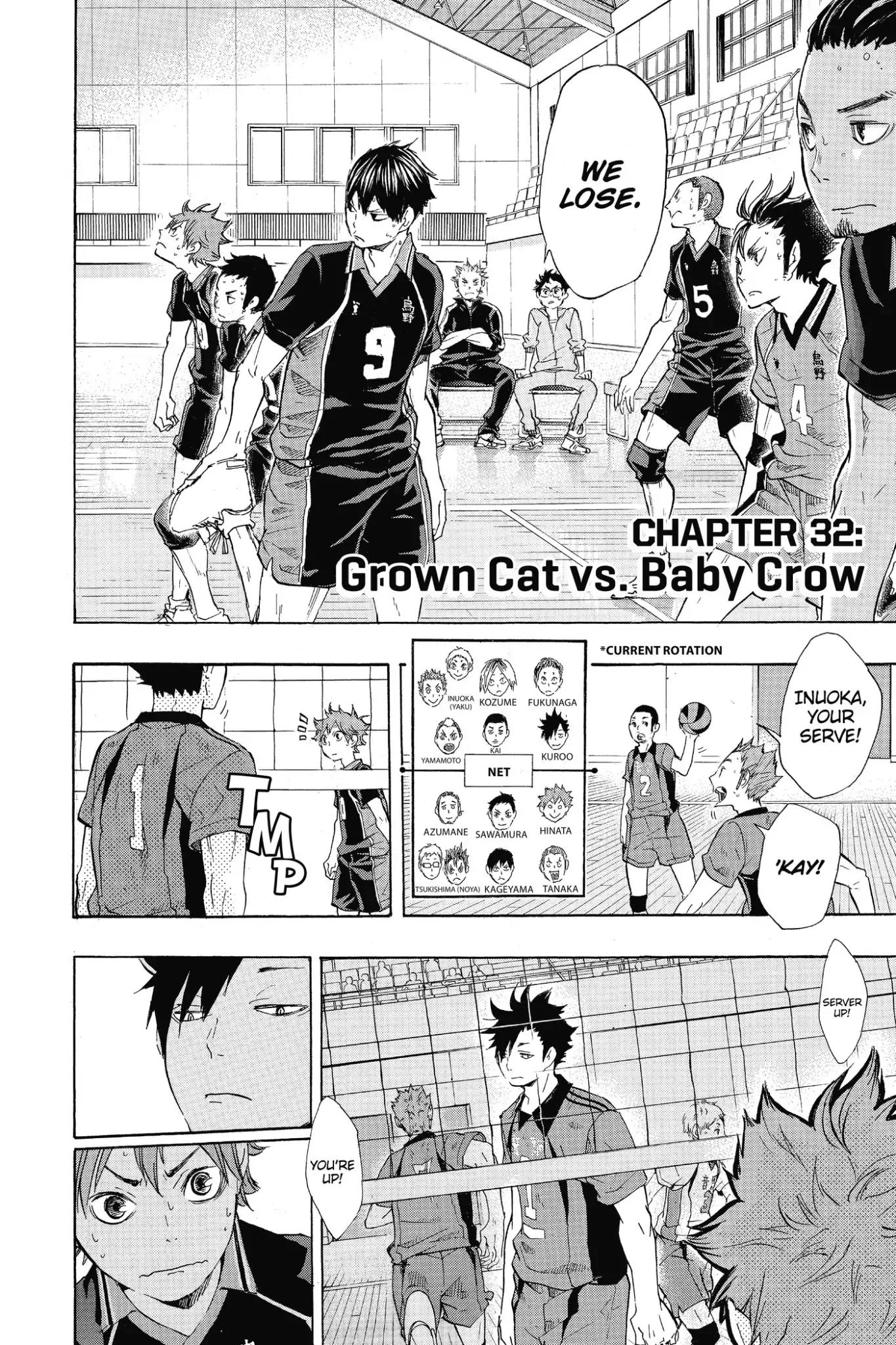 《Haikyuu!!》Vol.4 Chapter 32 : an adult cat and a crow chi...