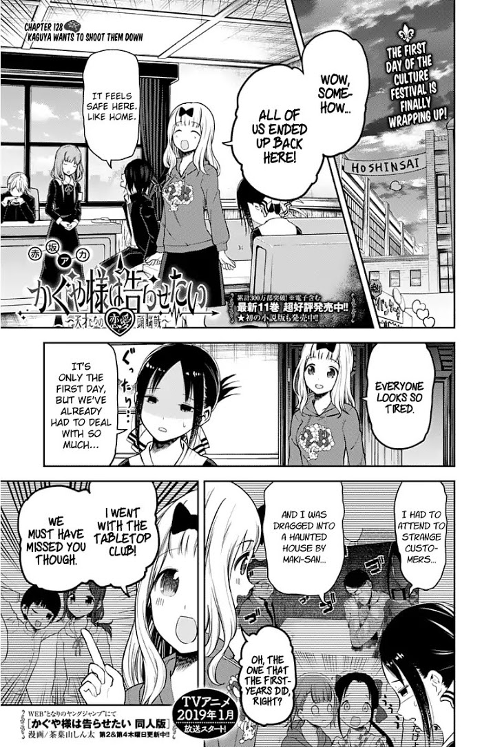 《Kaguya-Sama Wa Kokurasetai - Tensai-Tachi No Renai Zunousen》Vol.13 chapter 128: kaguya wants to shoo...