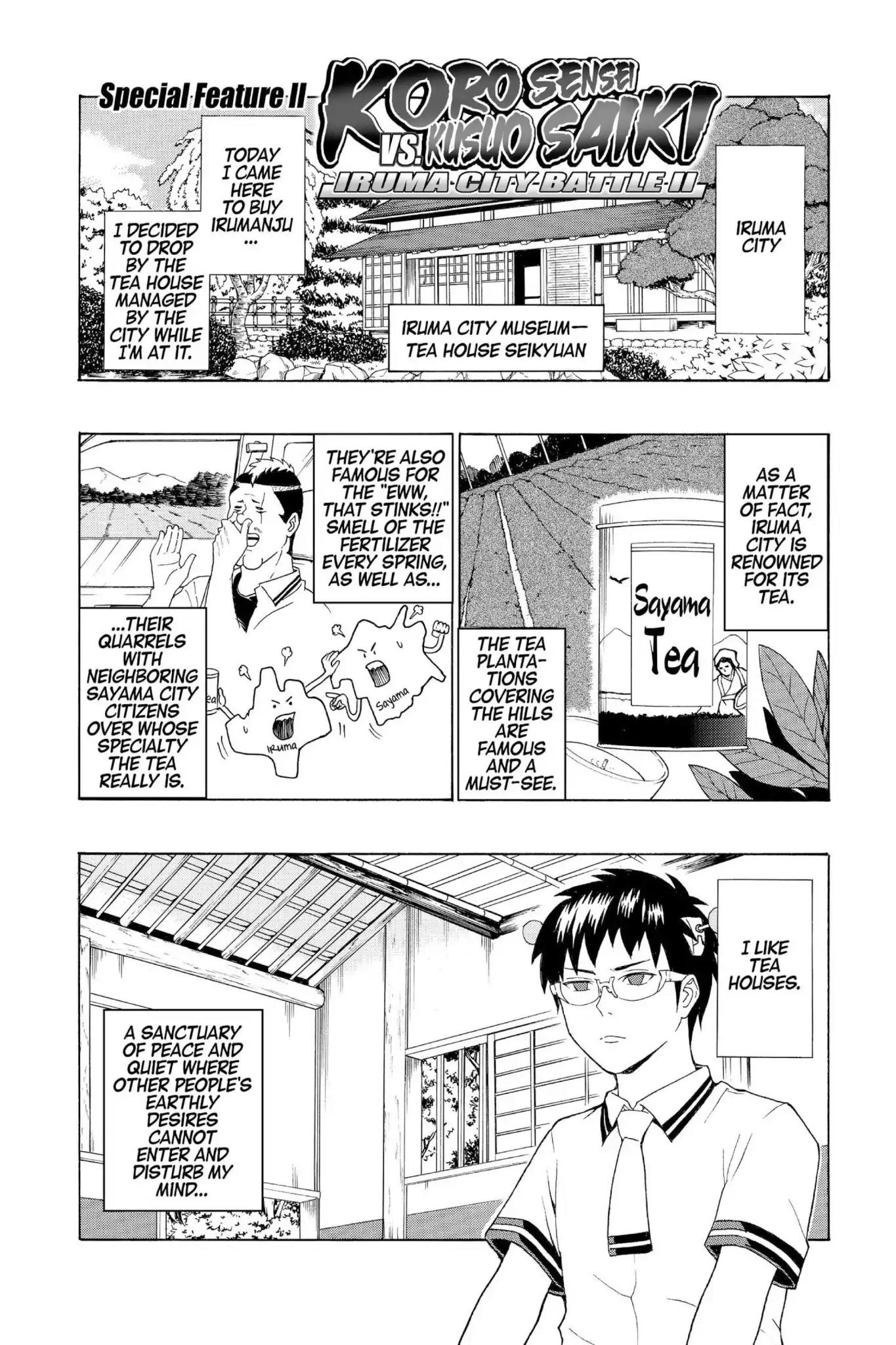 Chapter 0: Vol.7 SPECIAL FEATURE: Special feature II: Koro Sensen vs Kusuo Saiki, Iruma Battle II Vol.7 special feature: special feature...