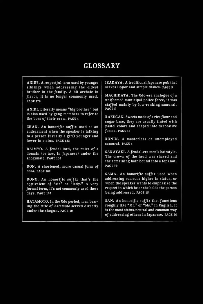 《House of Five Leaves》Chapter 5.9: Vol.7 GLOSSARY Vol.7 glossary