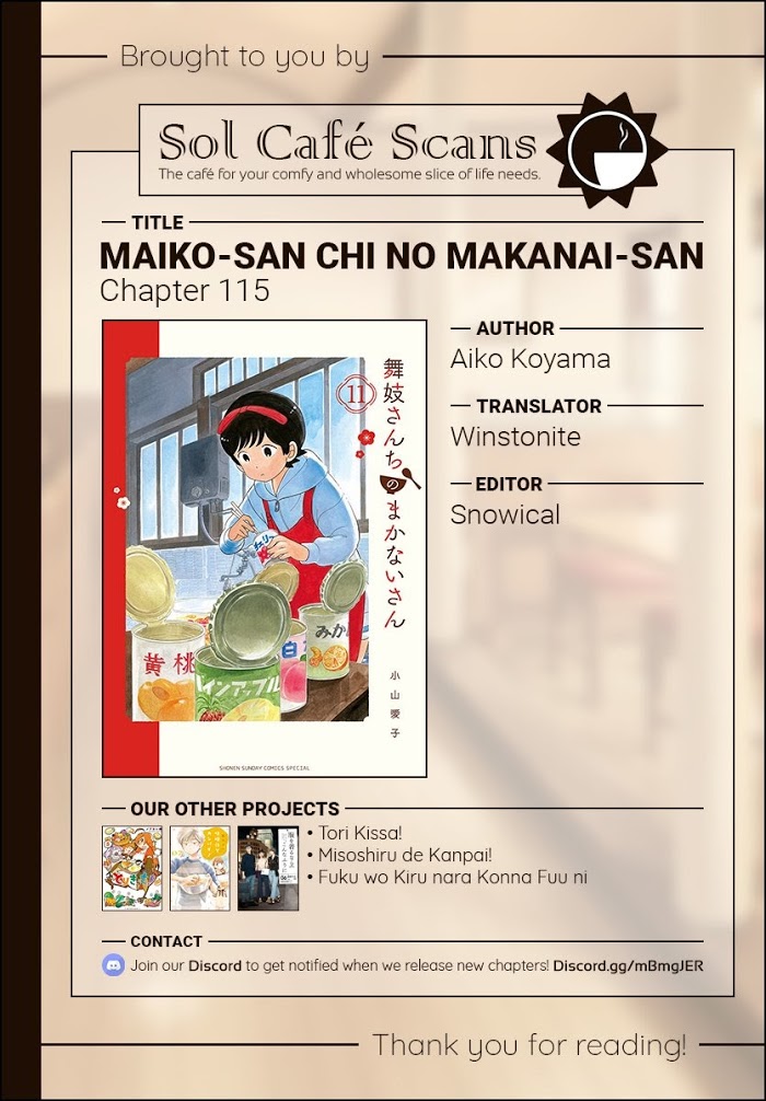 《Maiko-san Chi no Makanai-san》Vol.11 chapter 115