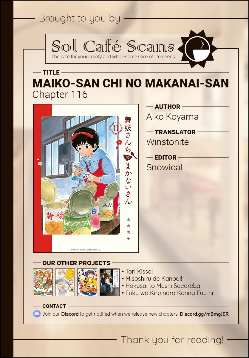 《Maiko-san Chi no Makanai-san》Vol.11 chapter 116