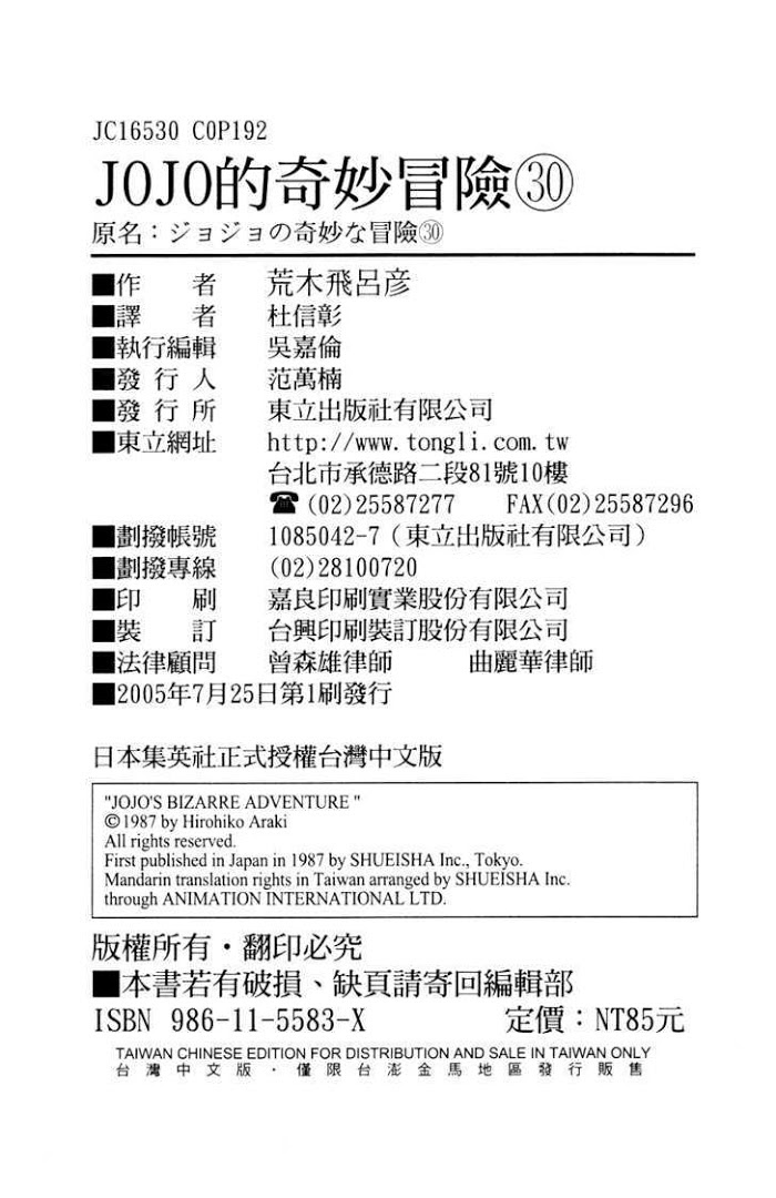 《JoJo's Bizarre Adventure》Vol.30 chapter 283 : nijimura brothers p...