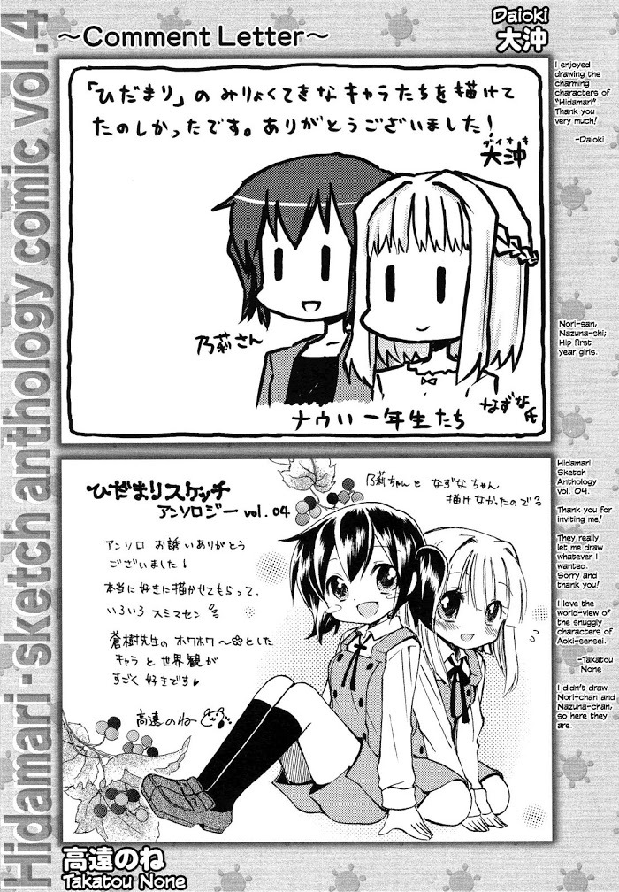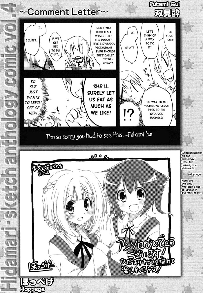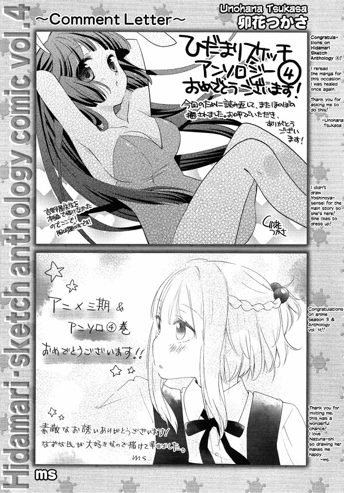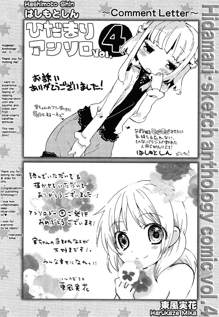 《Hidamari Sketch Anthology Comic》Vol.4 chapter 13: author comments